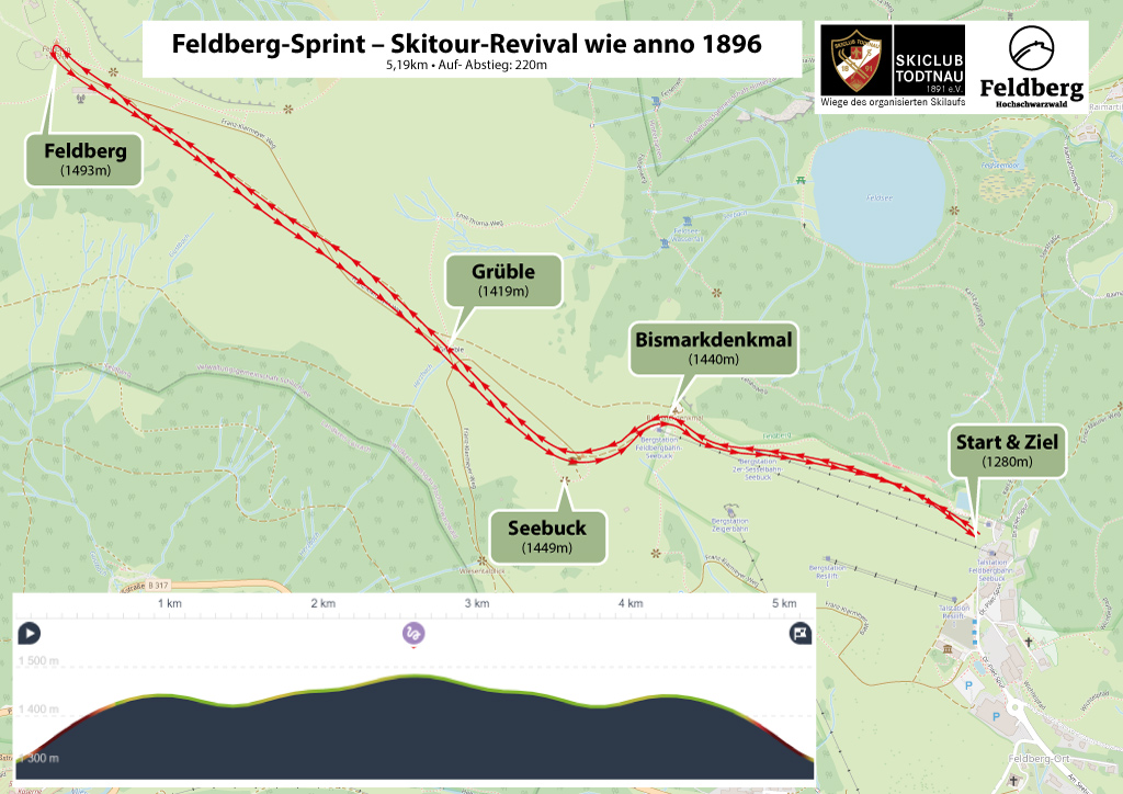 Die Strecke führt auf einer Länge von 5,2km und 220 Höhenmetern von der Talstation des 2er Sessellifts, vorbei am Bismarkturm, den Fernsehturm, hinüber zum Feldberg, erneut zum Fernsehturm, zurück über Seebuck bis zur Talstation des 2er Sessellifts. Eine Route, die sich eng an die Originalstrecke von 1896 anlehnt.