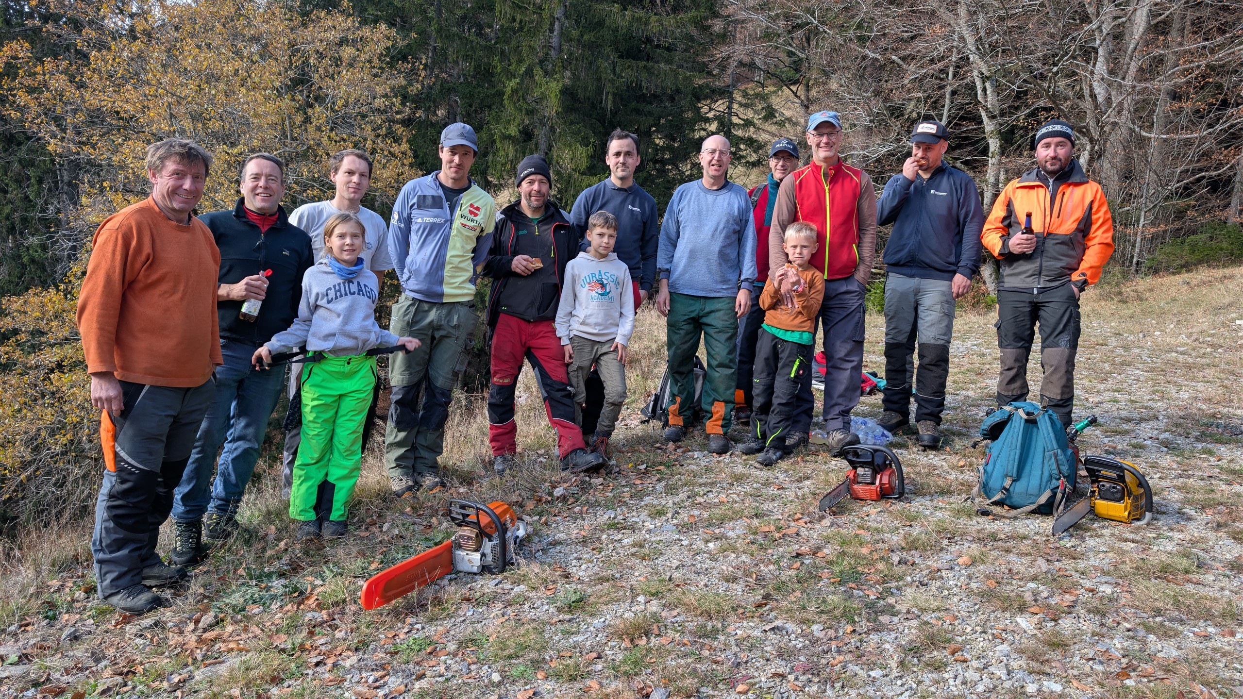 Für das leibliche Wohl war selbstverständlich gesorgt: Bei einer kleinen Vesperpause mit Getränken konnten alle neue Kraft tanken, bevor bis etwa 15:00 Uhr weiter „gesägt“ wurde. Trotz der Anstrengung stand der Spaß im Vordergrund, und am Ende konnten die fleißigen Helfer:innen stolz auf die freigehurstete Fläche blicken.